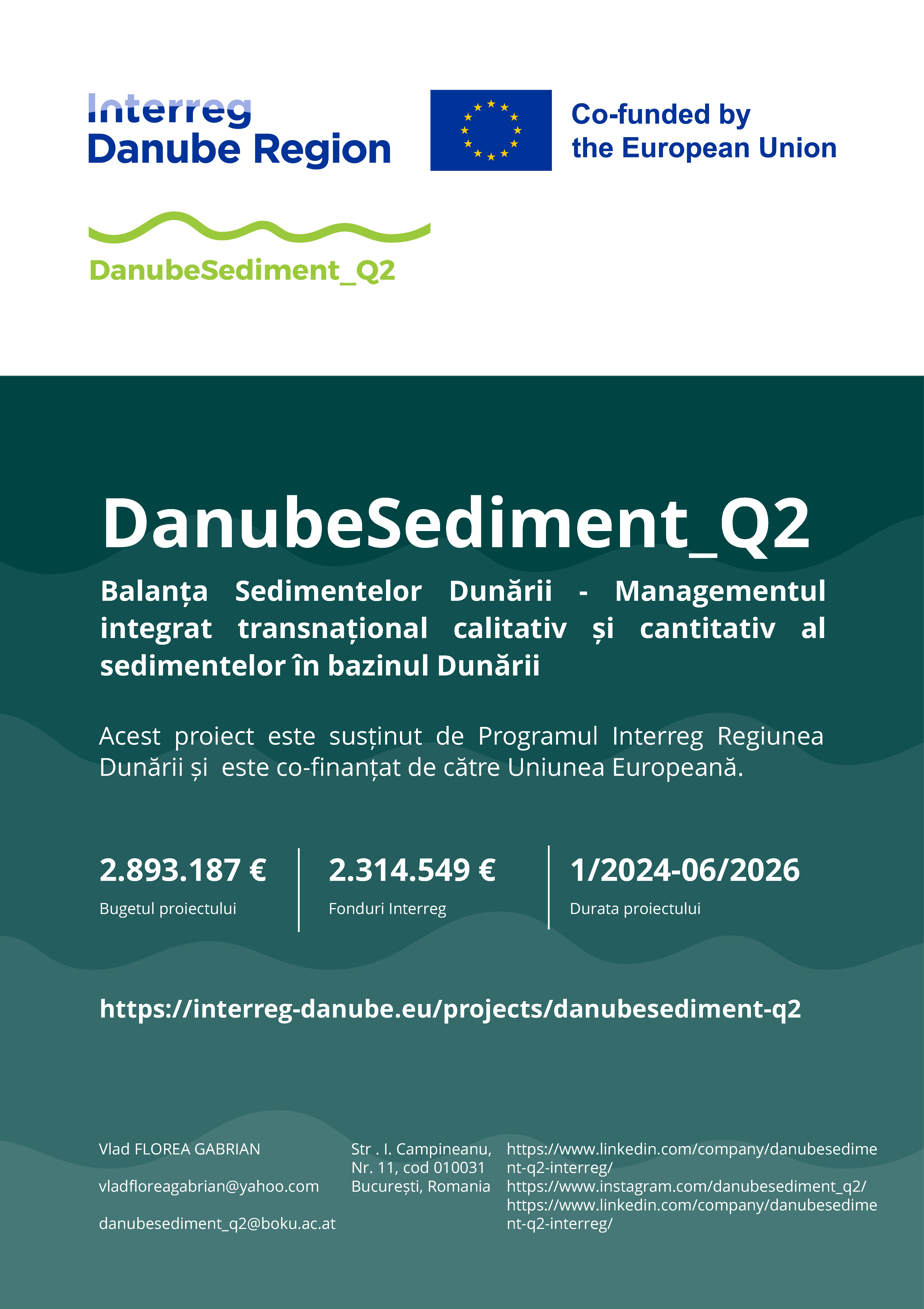 Proiectul DanubeSediment_Q2 este finanțat prin Programul INTERREG Regiunea Dunării (cofinanțat de către Uniunea Europeană) și are ca scop îmbunătățirea managementului cantității și calității sedimentelor în Bazinul Fluviului Dunărea pentru atingerea obiectivelor de mediu. Rezultatul principal este primul Plan de management integrat al sedimentelor (ISMP) pentru bazinul fluviului Dunărea. În cadrul proiectului se vor recomanda soluții și opțiuni concrete care vor fi integrate de către Comisia Internațională pentru Protecția Fluviului Dunărea (ICPDR) în următorul Plan de management al bazinului hidrografic al Dunării, precum și în Planul de management al riscului la inundații. Pentru a realiza acest lucru, de o importanță majoră vor fi:  îmbunătățirea și extinderea rețelei de monitorizare  calitativă  și cantitativă a sedimentelor, noi metode de evaluare hidromorfologică și  evaluarea riscului privind sedimentele. Pentru a obține aceste rezultate, este necesară o cooperare transnațională. Din acest motiv, părțile interesate sunt puternic implicate în discuție încă de la început. Pentru a dezvolta noi măsuri, se efectuează monitorizare și evaluare și se dezvoltă modele pe baza studiilor de caz, precum și a testelor pe modele fizice. Mai mult, sunt dezvoltate noi metode de evaluare a hidromorfologiei și a riscului efectelor unui echilibru sedimentar perturbat.